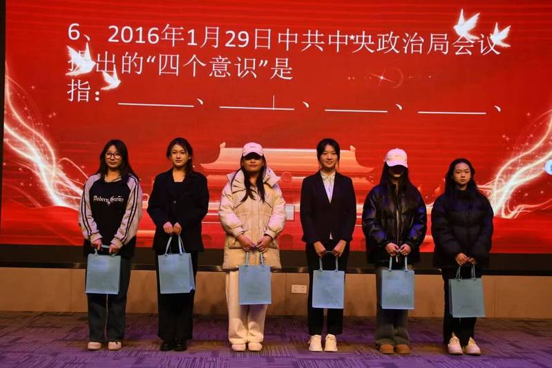民族气节,重于泰山。李令然同学的《传承先烈精神,赓续红色血脉》(张自忠将军)演讲,则以深刻的情感,带领现场的观众走进了那段可歌可泣的历史。张自忠将军等先烈们的精神,如同璀璨星辰,熠熠生辉。他们用热血书写忠诚,用生命捍卫尊严,永远激励着每一位莘莘学子奋力前行。 在紧张激烈的演讲比赛中场,还特别增设了爱国党建知识互动答题环节,现场气氛瞬间被点燃,同学们踊跃抢答,答对者收获精美奖品,欢声笑语与知识的火花交织碰撞。