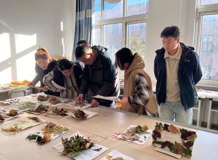 这幅落叶组成的画卷,是大自然赠与的斑斓外衣,一片片落叶翩翩起舞,点缀着大地的每一角落。这些被遗忘的自然之子,承载着季节的变迁与生命的秘密,等待着心灵的手,将它们的美丽定格成永恒。同学们将自然的馈赠转化为独特艺术品,传递了一份温暖与感动。用心灵的手指轻轻抚摸,感受它们细腻的肌理与岁月的温润。