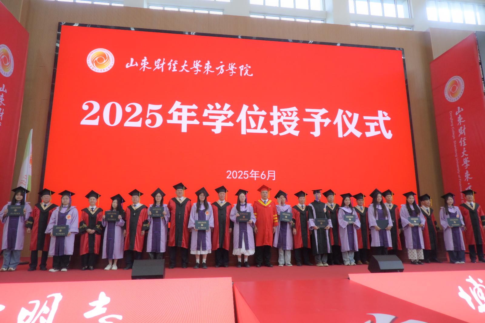 上午9时,毕业典礼暨学位授予仪式在雄壮的国歌声中拉开帷幕。副院长孙延民宣读2025届本、专科学生毕业的决定,副院长于栋宣读优秀毕业生表彰决定,典礼还邀请到了杰出校友代表辛国峰发言。随后,我院优秀毕业生代表刘锦鹏、李欣遥等上台领奖。最后,院长范玉宝发表题为《跨越未来,奔赴山海》的讲话,希望同学们以青春之我,在不确定的时代中,以确定的努力,书写新时代青春的壮丽篇章。
