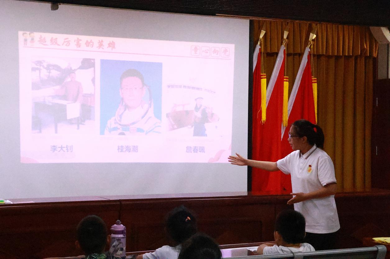 在上午的"红心照亮童心"宣讲课上,实践团成员以互动问答形式开场,迅速拉近了与孩子们的距离。主讲人孙梦婷以生动的语言讲述了李大钊先生以笔为戈、传播真理的革命故事,将这位马克思主义先驱的爱国情怀娓娓道来。随后呈现的当代英雄事迹——从航天员桂海潮的逐梦苍穹到远洋船员詹春珮的坚守海疆,让抽象的爱国情怀变得具体可感。在"童心向党"绘画环节,孩子们用稚嫩的笔触描绘心中的英雄形象,一幅幅充满想象力的画作展现了红色种子正在幼小心灵中生根发芽。