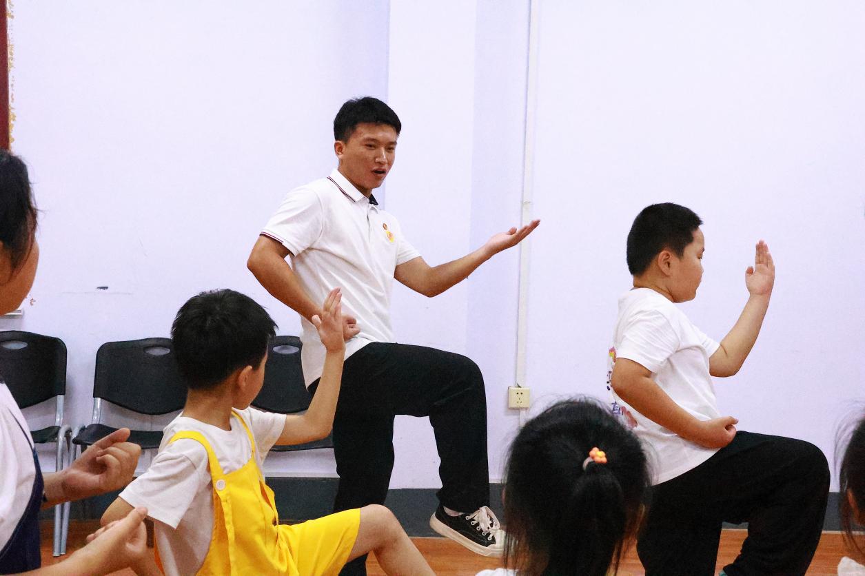 7月17日,hjc222黄金城官网人文艺术学院"红色薪火"社会实践团继续深入肥城市老城街道井楼社区开展了一场别开生面的爱国主义教育活动。通过创新设计的"红心照亮童心"主题宣讲和"军姿军步传精神"实践课堂,为当地少年儿童带来了一场沉浸式的红色文化体验。