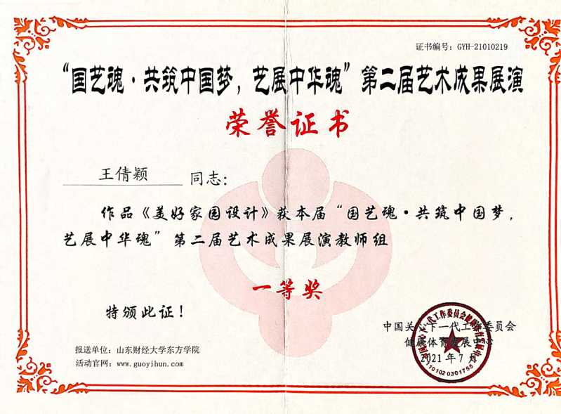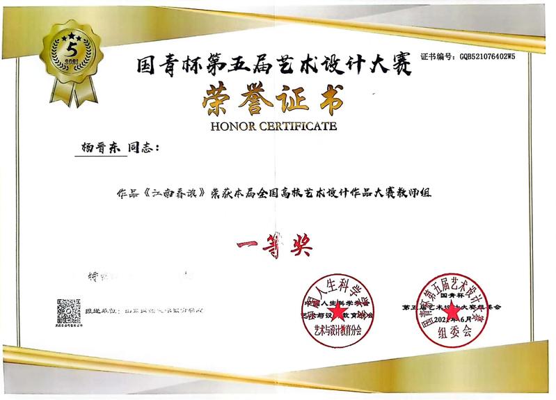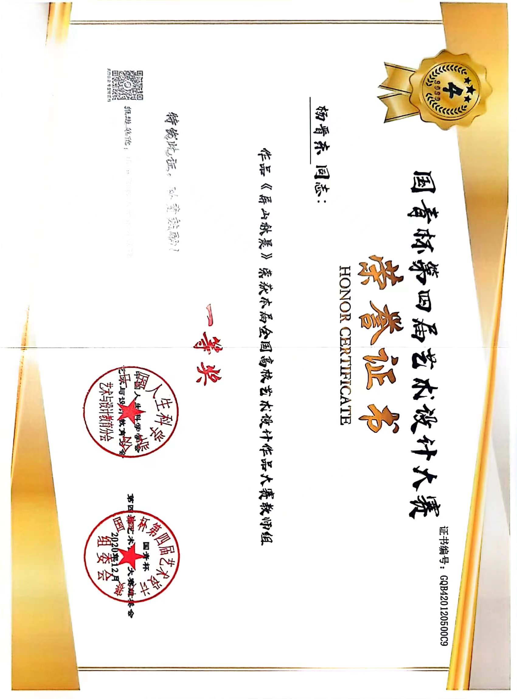 国青杯、国艺魂、美丽中国设计大赛获奖证书