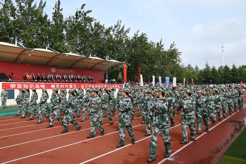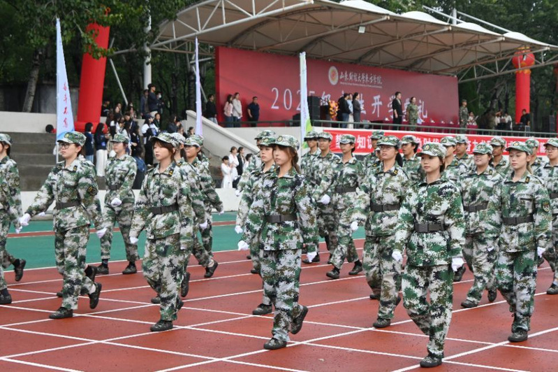 训练场上,新生们身着统一军装,精神饱满、眼神坚毅,稍息、立正、跨立、停止间转法、行进与立定等动作行云流水、整齐划一,不仅全方位呈现军训扎实成果,更以纪律与协作彰显人文艺术学子的青春担当。