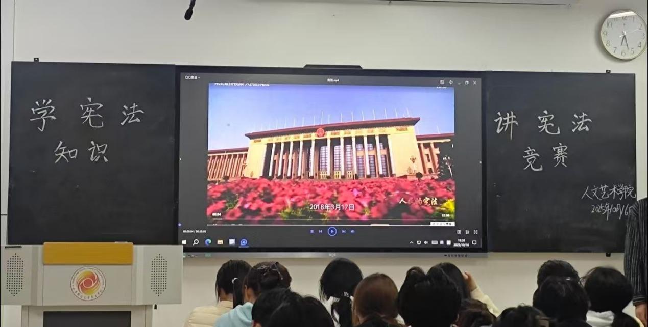 为贯彻落实依法治国战略,弘扬宪法知识,增强学生对宪法法律的了解。人文艺术学院于10月16日晚在明志楼4308教室举办”学宪法,讲宪法”的知识竞赛。我院学子积极参加。