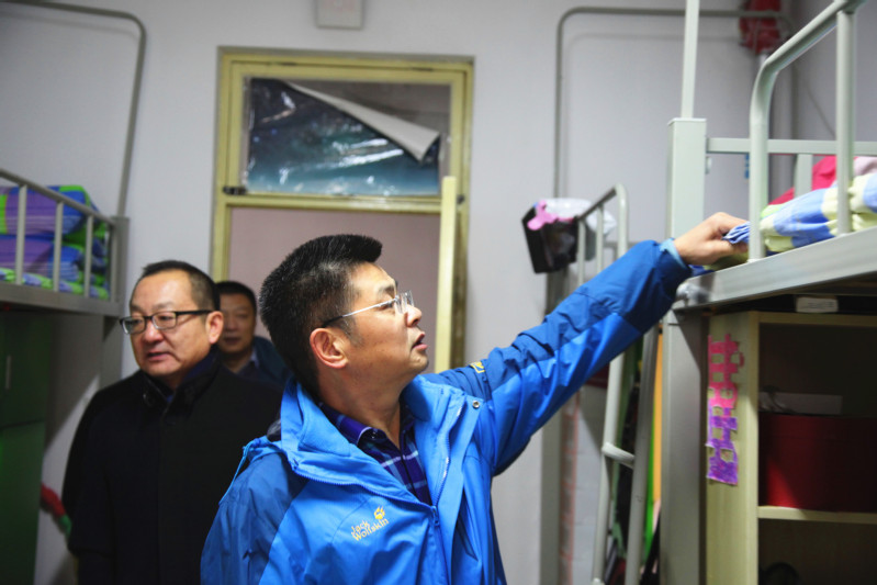 首先,耿金波到德苑和9号学生公寓实地调研,现场听取了社区管理中心关于学生宿舍日常管理、卫生保洁、安全保卫、值班制度落实情况的汇报;实地查看了学生公共浴室、自助饮水、洗衣等服务情况及学生宿舍冬季供暖、学生床上用品等情况;针对宿舍管理和后勤保障服务等问题与学生进行了面对面的交流。耿金波还实地考察了就业指导中心、大学生心理咨询中心,听取了相关科室负责人关于服务学生情况的汇报。