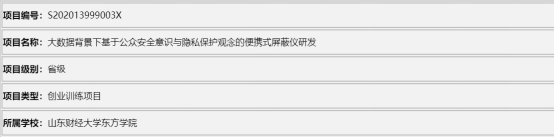 2020年8月12日,山东省大学生创新创业训练计划项目在线上顺利完成并公示比赛结果。由我院巩潇娴、张蓉老师指导,陈学梦、李雪、张盼盼三位同学申请的“便携式屏蔽仪”项目荣获省级立项,获批项目研究经费2万元。该项目旨在基于大数据背景下公众安全意识与隐私保护观念的逐步提高,提取原有屏蔽仪的工作原理,升级产品芯片,研发外观多样化的便携式屏蔽仪,着重保护外出时的个人隐私。