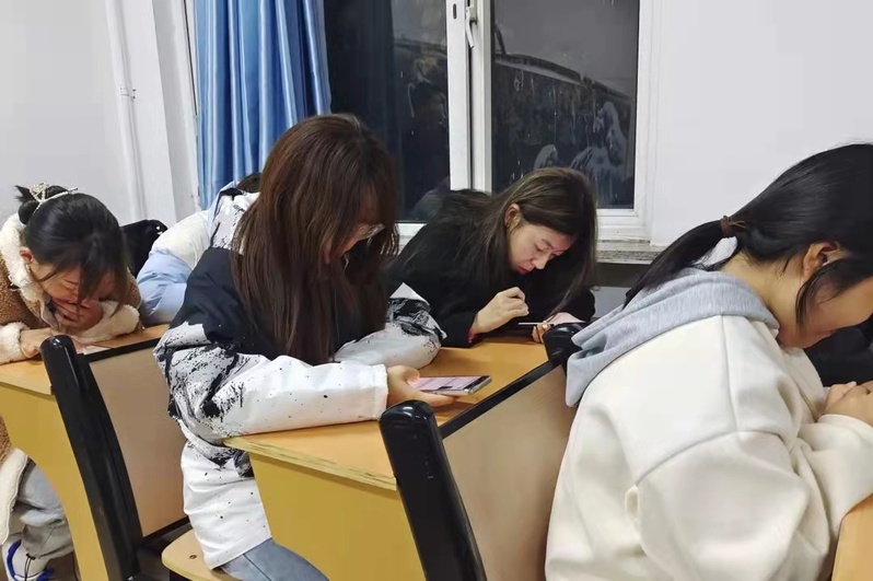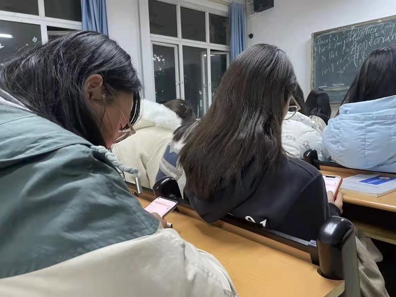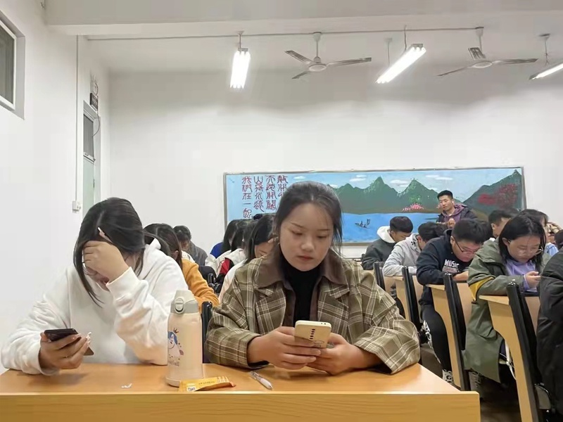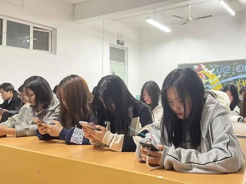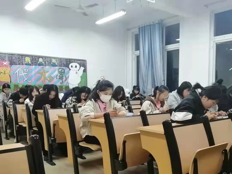 本次活动安排在了星期日的晚自习,同学们在晚上八点准时使用手机扫描二维码进行测试。通过各种题型,来检查的同学们对大学生手册的了解程度。