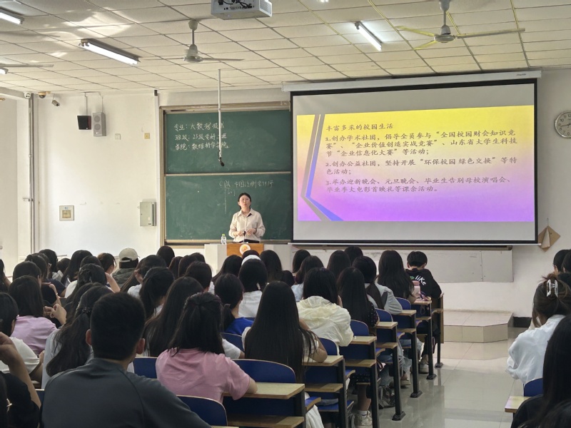 张广源老师作报告时先和新生来了一个互动,让新生对自己选择的专业有了更清晰的定位。他结合专业定位和就业趋势强调了当今大数据学习的重要性,为同学们提出合理规划学期目标、培养良好的学习态度、多元化学习等建议。