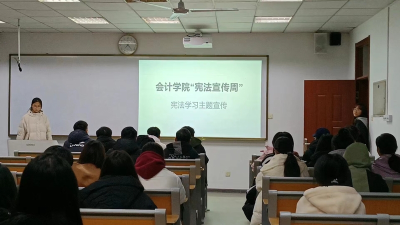 12月1日至6日,会计学院在2307、2405、2409、2410等教室进行宪法学习宣传活动,向同学们详细讲述了宪法的地位及其重要性,观看宪法知识相关视频。活动现场氛围活跃,同学们积极参与,互动频繁,活动进展有序顺利。