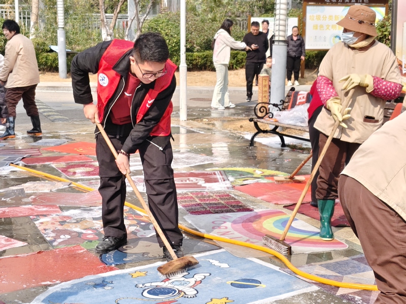 志愿者们进入社区,分工明确,积极开展学雷锋活动。志愿者对前来参与社区活动的居民进行引导和登记;负责清洗地垫的志愿者,他们不怕脏、不怕累,认真细致地清洁每一块地垫,为社区居民营造更加整洁、舒适的生活环境。志愿者主动帮助社区居民将磨好的菜刀和剪刀进行包装,方便居民领取。