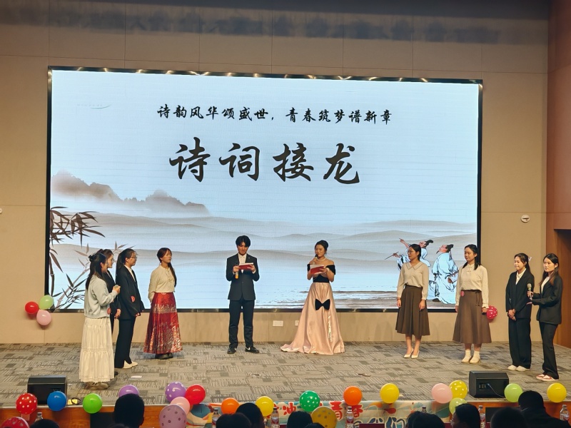 歌曲余音尚未散尽,紧张刺激的诗歌接龙环节便紧接着拉开帷幕。每位参赛者皆眼神坚定、精神抖擞,凭借扎实的诗词积累与敏捷的反应能力,在答题过程中沉着应对、默契配合,用实力诠释了当代大学生对中华优秀传统文化的热爱与传承。