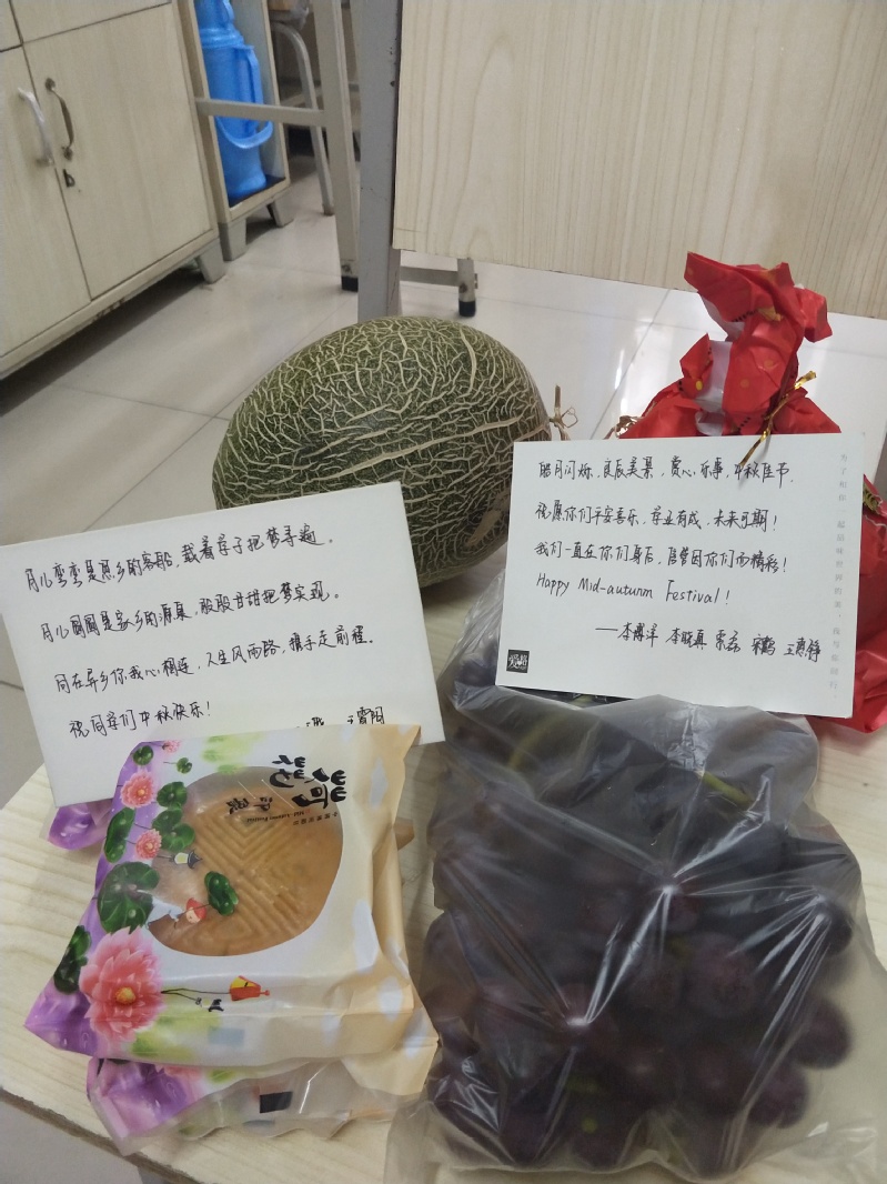 为让广大新生在中秋佳节感受离家在外的温暖与祝福,9月24日下午,信息管理系组织导生,前往新生宿舍提前把准备好的月饼、哈密瓜、葡萄、柚子以及节日贺卡祝福放到每个新生的桌子上。