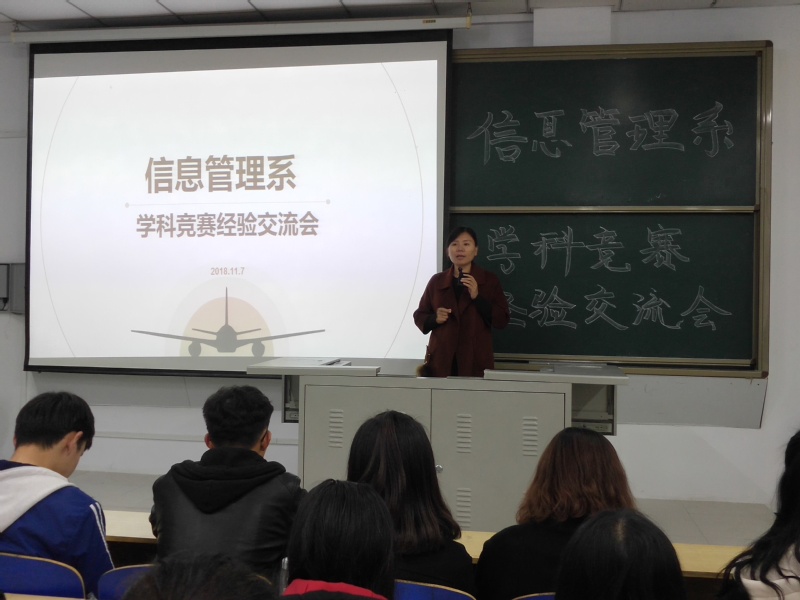 为鼓励学生积极参加各类学科竞赛,以培养学生创新创业意识和团队协同能力,11月7日晚,信息管理系在唯美楼5207召开学科竞赛活动经验交流会。此次交流会由信息管理系副主任谢蕙老师主持,信息管理系全体学生参加。