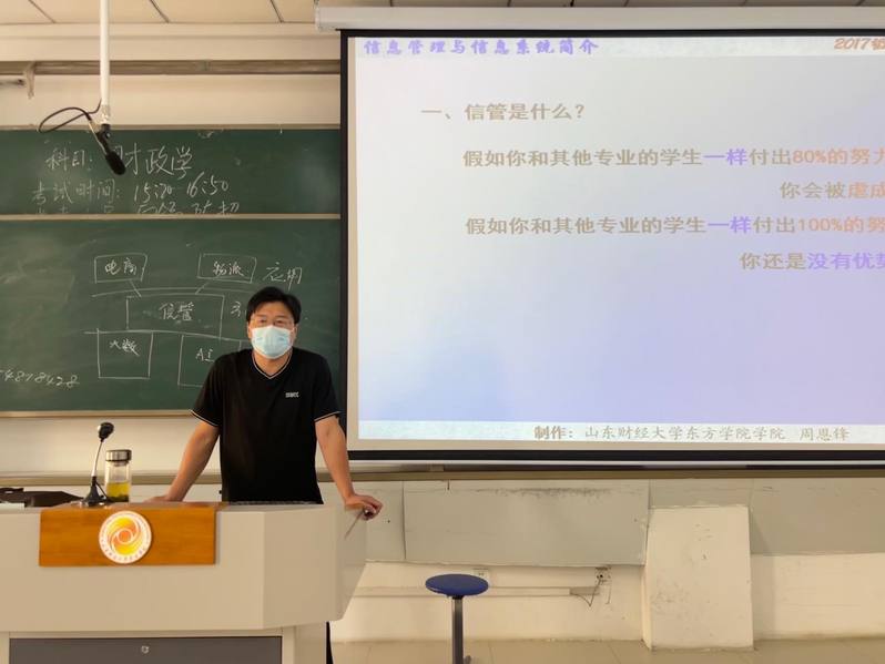 信息管理与信息系统教研室主任周恩锋副教授介绍了该专业的知识、能力和素质结构,他结合从业前景,向同学们解读专业人才培养方案,明确专业学习方向和意义,并结合人才需求剖析了就业前景,建议同学们保持积极的心态、学好专业知识、掌握专业技能鼓励大家尽快调整学习态度、转变学习方法,适应大学新阶段的学习。
