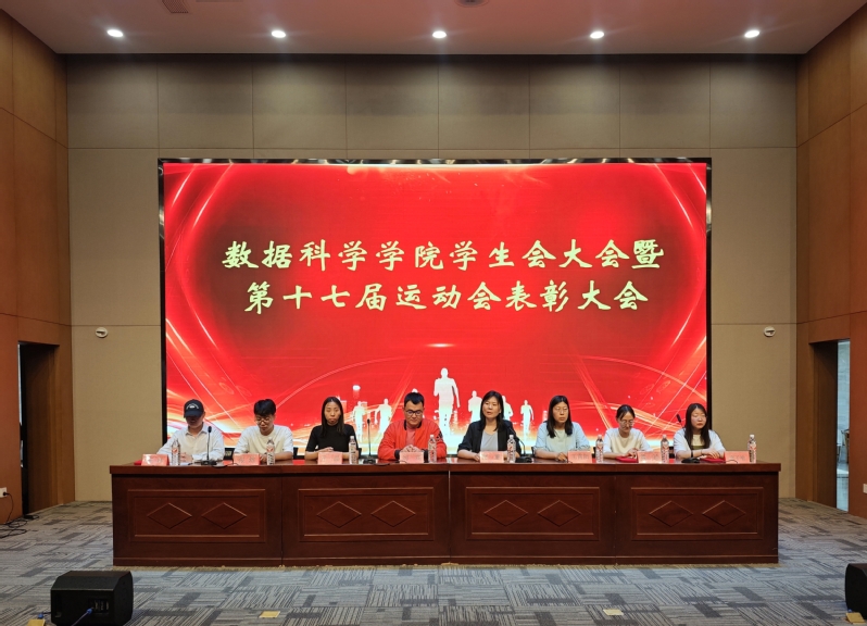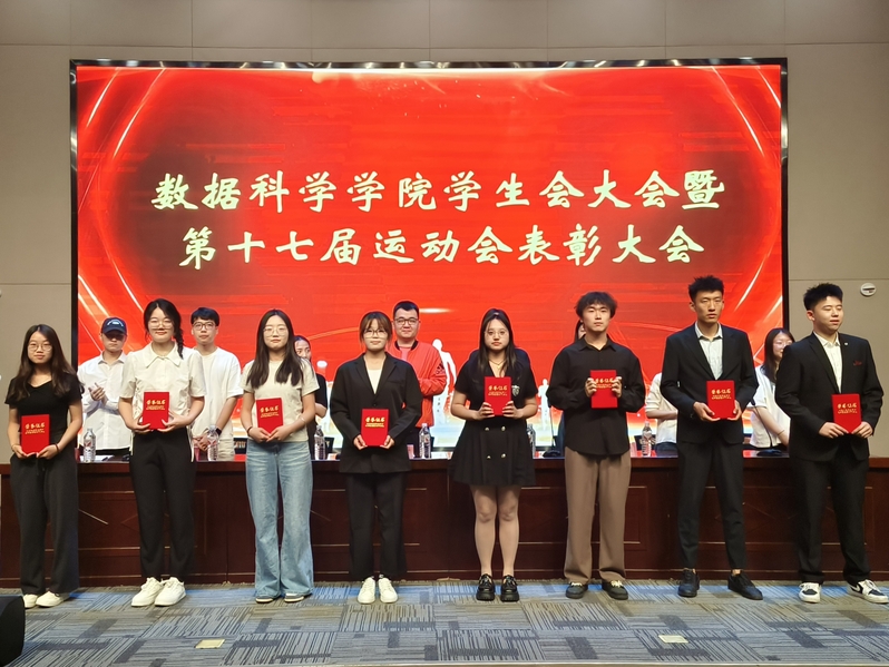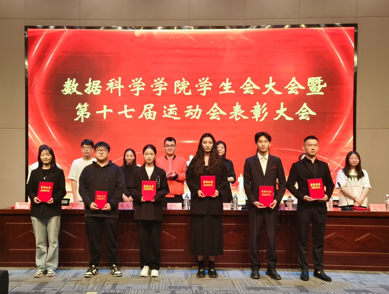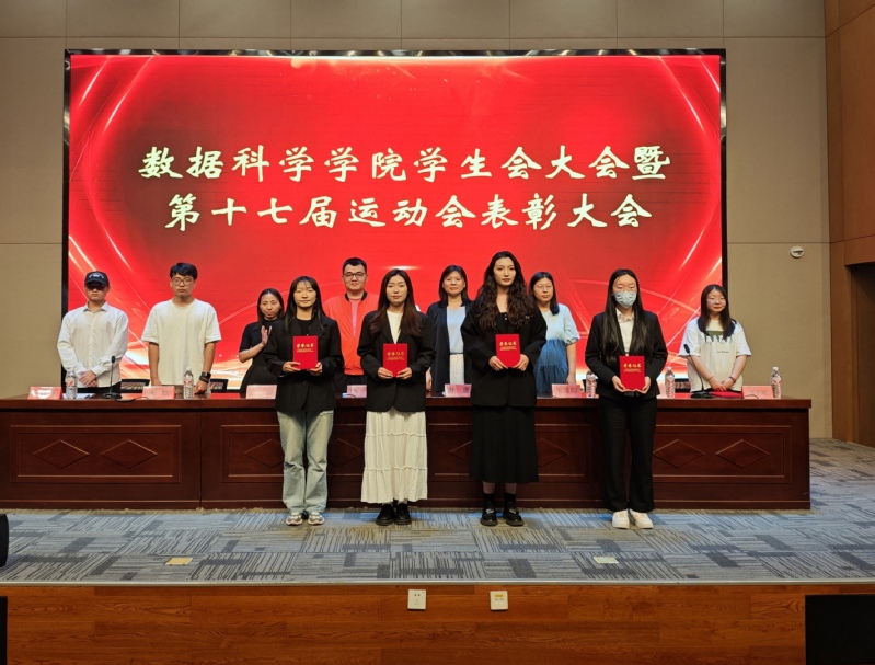 大会伊始,学生工作办公室主任刘宾介绍了运动会比赛情况及荣誉并宣读表彰名单,本次表彰人员分为四类:突出贡献奖、优秀学生、优秀学生干部、学生会优秀部门。随后,学生会主席陈冉就学生会工作总结发言,对学生会各部门的工作表示认可,并希望下一届学生会成员多总结、多反思,再接再厉,未来能够取得更优秀的成绩。最后,数据科学学院副院长谢蕙对本次表彰大会进行了总结发言,她首先对学员在本次运动会上取得的成绩表示高度认可,对全体运动员以及学生干部表示衷心的感谢。她希望通过表彰先进,同学们能够将运动会的拼搏精神带到学习和生活中,努力提高综合素质,也希望各位获奖同学发挥表率作用,开拓进取、再创佳绩,为学院争光。大会在同学们热烈的掌声中圆满落下帷幕。