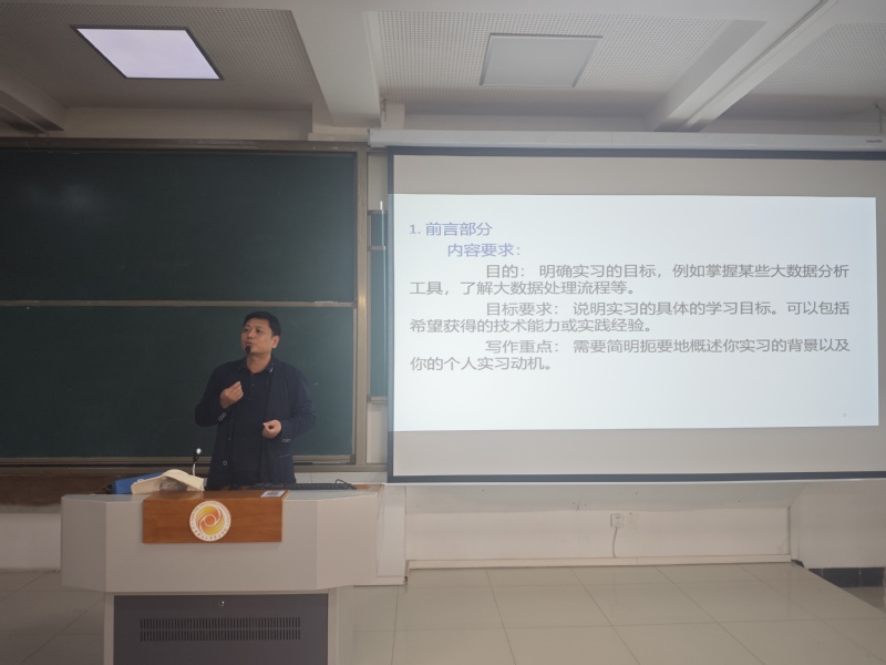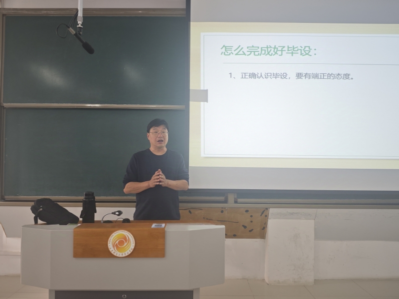 信息管理与信息系统教研室主任周恩锋凭借丰富的学术经验和专业知识为学生们展开了深入的论文指导。首先要求学生要正确认识毕业设计,在毕业设计工作中学生是主体,导师是依靠,沟通是保障。要学会、习惯、善于查找资料。随后重点介绍本届毕业实习和设计的流程和每一个环节的时间节点,并通过优秀案例对选题,开题,中期检查,设计和论文每一个环节的方法和注意事项做了具体的说明。最后重点强调了论文格式,论文结构和论文原创性等。