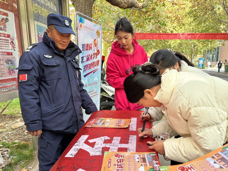 此外,活动中通过鼓励师生们在横幅上签名的方式,以表达自己对消防安全工作的支持和承诺。许多师生纷纷驻足,认真阅读传单内容后,郑重地在横幅上签下了自己的名字,用实际行动为消防安全贡献自己的一份力量。