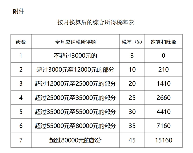 附件:按月换算后的综合所得税率表