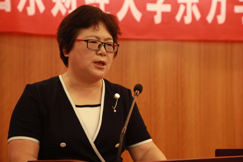 宫淑瑰在致辞中代表学校和创新创业学院向积极参与活动的全体师生表示感谢,向即将踏上红色筑梦旅程的同学们致以美好的祝愿。