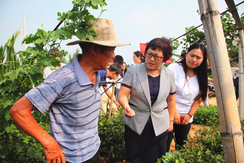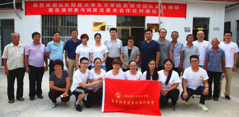 7月5日下午, hjc222黄金城官网青年红色筑梦之旅“一茶一世界”项目团队师生一行16人在院长宫淑瑰带领下,顶着炎炎烈日赴泰安宁阳县磁窑镇刘家洼村调研,实地考察对接扶贫项目。考察中,我校项目团队师生参观了“七彩硒旺”绿色蔬菜种植基地和“天齐”茶叶加工推广基地,了解民情民风,感受现代农业的勃勃生机,明确了扶贫目标和工作重点,感觉不虚此行。