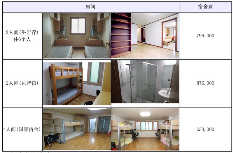 (4)住宿费用:住宿费+保证金(10,000韩元),保证金退宿时会退还。