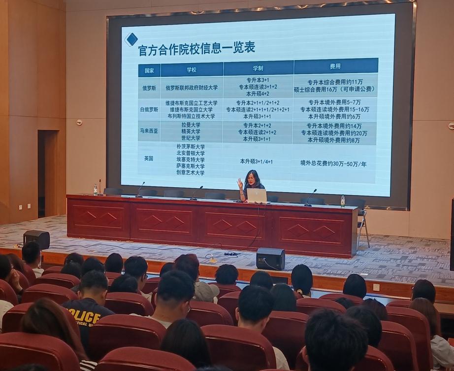 9月10日,国际交流合作处联合各二级学院,以2025级新生入学专业教育为契机,举办了以"一起看世界·海外深造2.0”为主题的国际交流项目宣讲会。宣讲会上,学校为新生全面介绍了丰富多元的国际交流项目,涵盖国内留学政策和福利、国内外升学现状对比、学校官方合作学历提升和联合培养项目、留学准备和语言培养四个大方向,为学生提供了国际视野与学术能力的双重赋能。