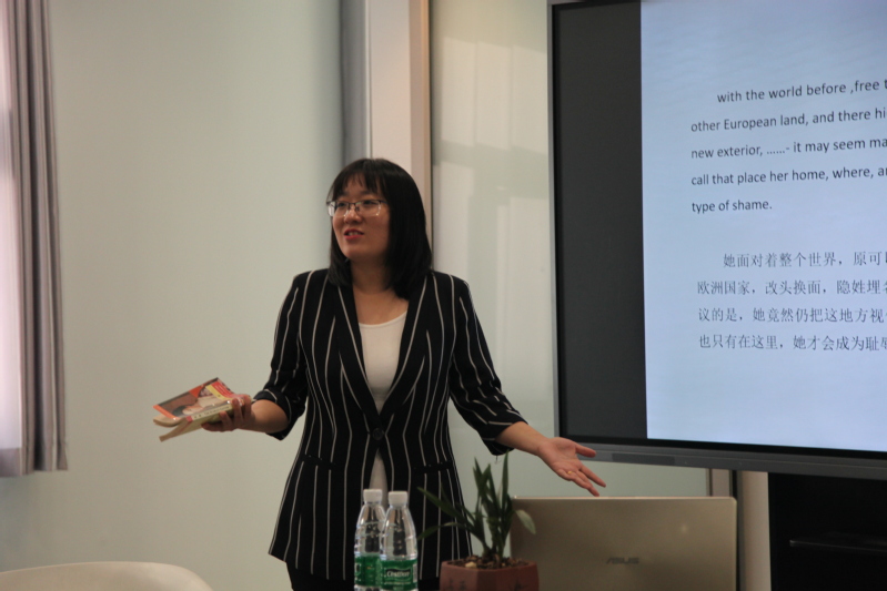 杨老师首先给大家介绍了《红字》的创作背景及人物介绍,接着讲述了自己对文章的感悟。杨老师是英美文学的授课老师,她用标准的美式发音给现场听众展现了文章的韵味。听完杨老师的讲解后,同学们也提出自己的思考和感悟,同学们开始交流自己所喜爱的图书,分享经典中的段落。大家畅所欲言,交谈甚欢。