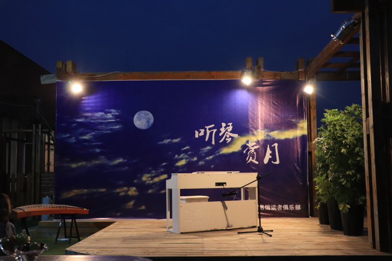 听琴·赏月中秋晚会9月29日晚6点半在图书馆四楼读者沙龙户外平台成功举办。本次晚会由大学生管弦乐团、图书馆读者俱乐部联合主办。节目形式丰富多彩,有钢琴、中阮、二胡、古筝独奏,琵琶、笙二重奏等,曲声悠扬,将我们带入了一个充满传统气息的世界,此外,还有舞蹈、小品为晚会增添了一些乐趣。