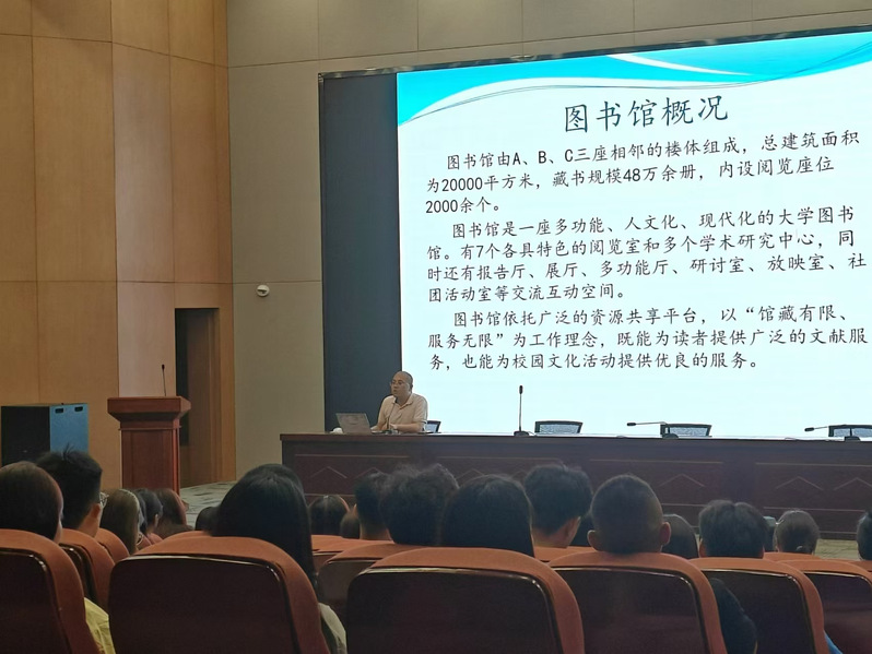 为帮助我校2024级新同学了解和使用图书馆的各项服务和资源,根据新生入学教育安排,图书馆于9月9日-11日对全校3000余名新生在报告厅开展了入馆教育活动。