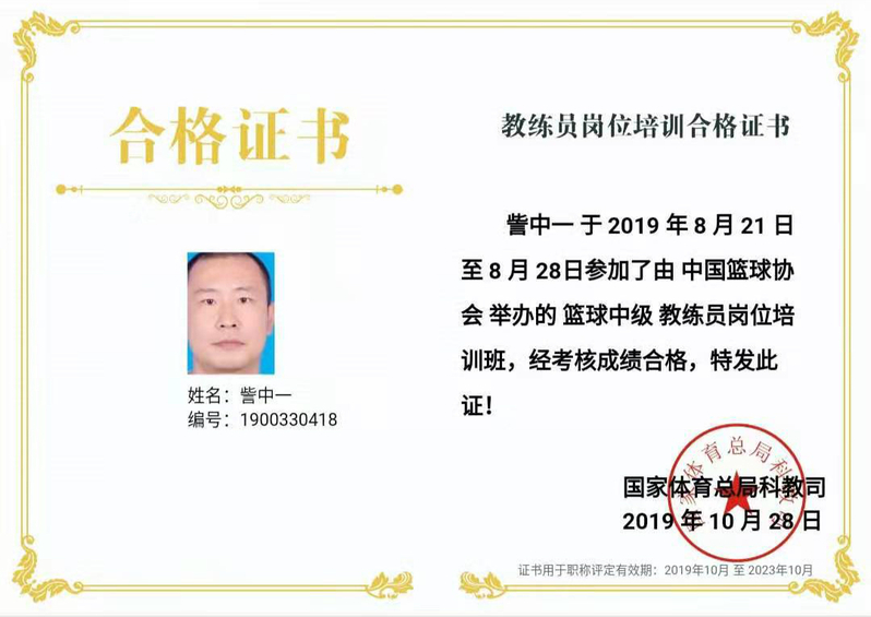 为提升我校体育教学的师资力量,我校公共教育学院訾中一老师参加了由中国篮球协会于苏州市举办的中级(暨C级)教练员岗位培训班。通过理论、实践考核,被批准为中级篮球教练员。本次培训是中国篮协为更好的落实教练员A、B、C、D、E五级培训规划而举办,共邀请了NBA洛杉矶湖人队体能教练马可、奥兰多魔术队助理教练史蒂文、北京体育大学教授李春雷、清华大学体育部主任刘波等多位专家教授进行授课。