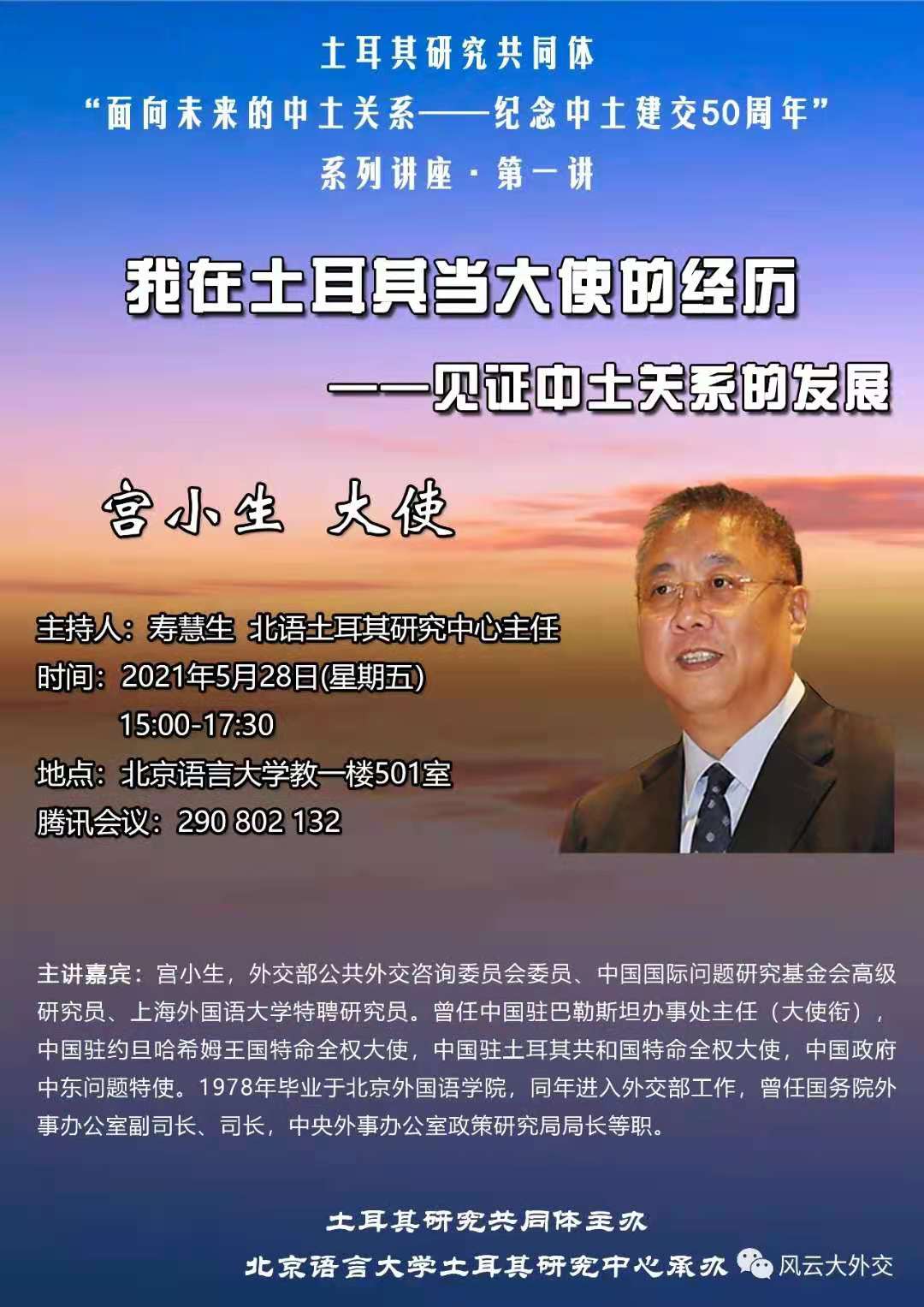 讲座预告——我在土耳其当大使的经历:见证中土关系的发展(宫小生、寿慧生