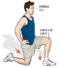 3、举臀弓步伸展。拉伸部位:全身。眼睛直视前方,单膝跪地,屈膝使大腿成直角,臀部肌肉用力,随着手臂上举,可以感受到躯干的伸展。