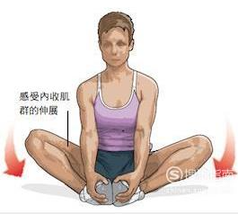 4、蝶式伸展。拉伸部位:腹股沟。坐姿,两脚掌相对,靠近身体。双膝慢慢向地面靠近,维持极限状态几秒。