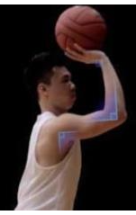 3、投篮时,要注意右手的手肘,手腕,肩与手要成3个90°(可根据个人习惯微调)。然后将球举起在头的上方,两只手要成一个倒”V“字,以保证眼前视线不被阻挡。