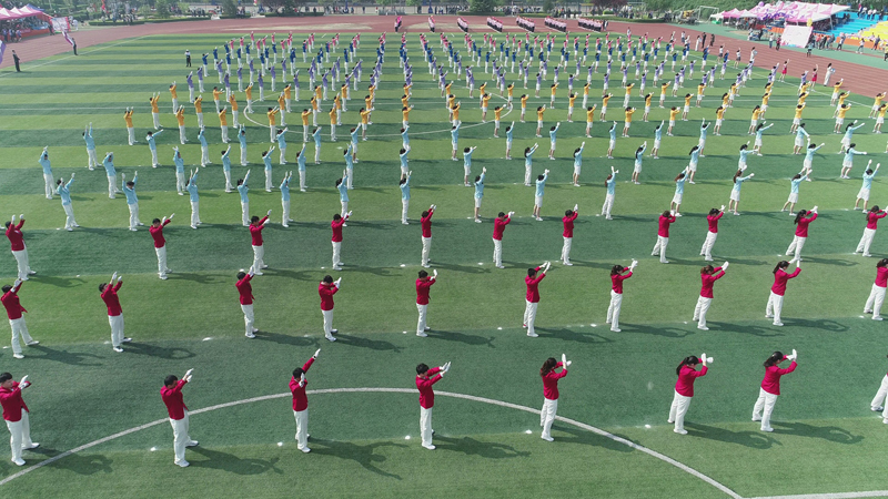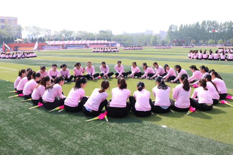 开幕式上,表演了大型团体操。葱绿的草坪跳动着青春灵动的舞姿。同学们像矫健的小鹿,像展翅的雏鹰,整齐划一的杯子舞、造型多端的扇子舞,把开幕式气氛推向了高潮。
