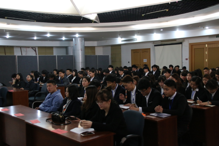 首先由财政金融系学生会主席刘顺凯学长发表讲话,他指出要以服务同学为目的,注重素质建设,团结部门力量,同时提高自己的组织策划能力。随后主席团其他成员也都依次发表了讲话,他们再次强调了学生会成员应尽的责任以及干事们该有的谦虚谨慎的学习态度,认真负责的工作状态。