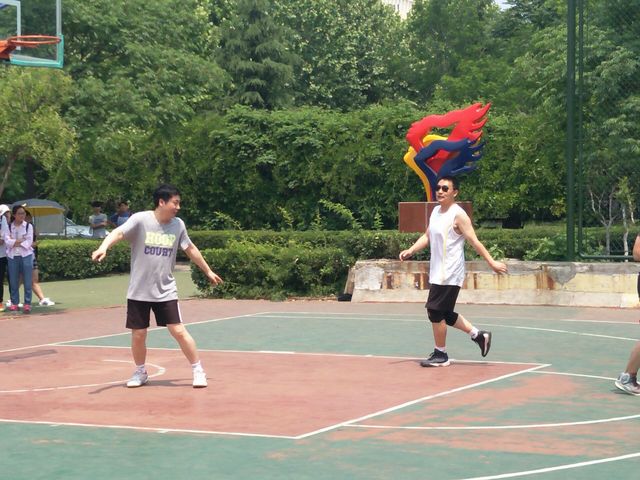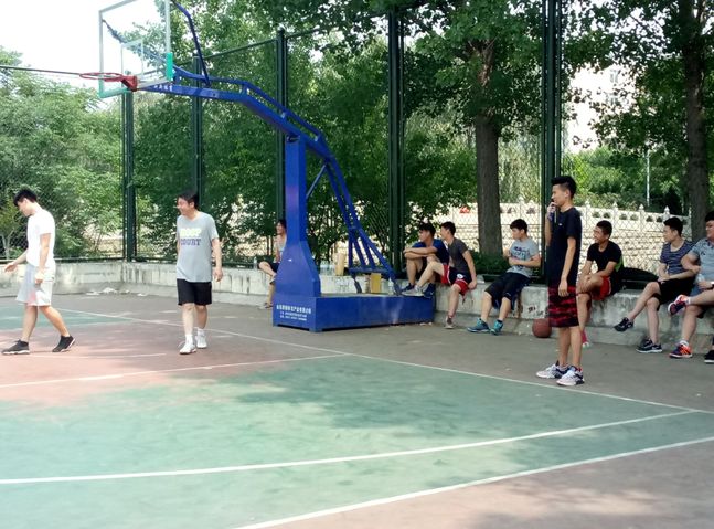 控球的队员有条不紊地在赛场上运着球,同时用手势指挥着队员。随着比赛越来越激烈,队员们奔跑在赛场上。毕业生代表们球技娴熟、攻守兼备,将运球、传球、控球、投篮等动作发挥的流畅自如;老师们带领的队伍也毫不示弱,一个个精神饱满,活力四射,灵活应战,一记记漂亮 的投球,以及完美的勾手,都令在场的观众叹为观止。