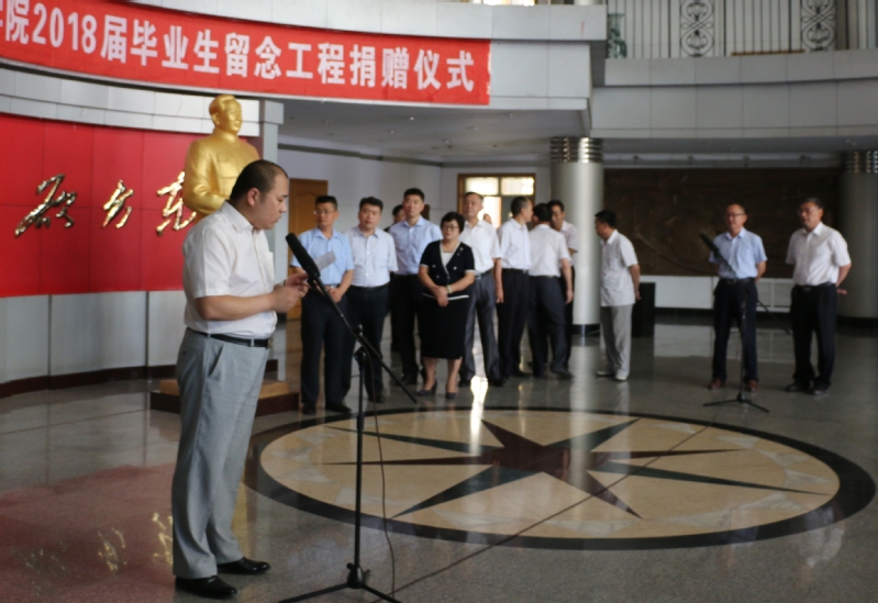 (学生通讯员夏圣杰)青春不散场,留念于人心。6月22日上午8:30我校于坤元楼二楼大厅举行2018届毕业生留念工程——古琴捐赠仪式,hjc222黄金城官网董事长陈磊、院长宫淑瑰、党委书记耿金波、副院长毕宏伟以及院属各部门、各系部的负责同志和毕业生代表出席捐赠仪式,学生工作处处长王伟主持此次捐赠仪式。
