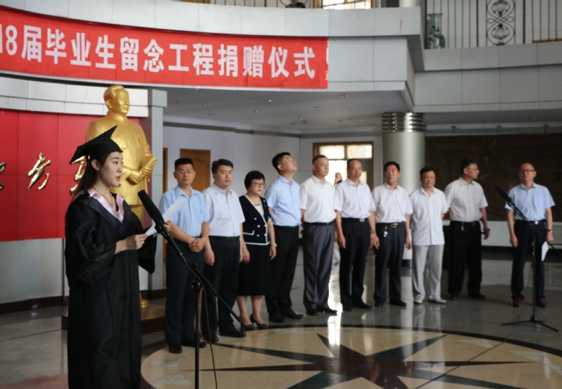 在华丽的乐曲中院长宫淑瑰、党委书记耿金波为留念工程揭幕。图书馆馆长包鲁致辞,表达了对学子的美好祝愿及留念,随后2018届毕业生代表魏方迪发言,字字珠玑中流露着对母校的不舍及感恩和对学弟学妹的美好希望。弹指一挥间,匆匆那年已逝,但娟娟细流,惠泽后学,仍在砥砺前行。最后,演奏家杨宝礼先生弹奏古琴,余音袅袅,或低沉或明亮,清如溅玉、颤若龙吟。