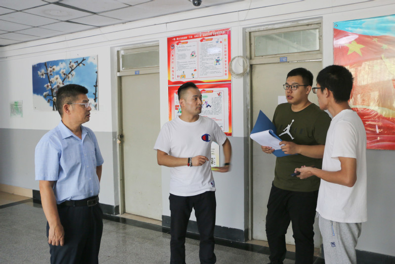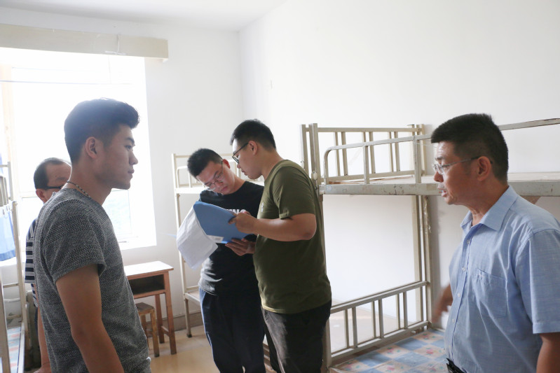 (学生通讯员杨鑫瑜)为了迎接2018级新同学,给新生提供良好的住宿条件,党委书记耿金波特别重视关心新生住宿环境,于9月4日下午,在学生工作处处长王伟的陪同下带领学生处负责社区相关老师以及各系辅导员对我校2018级新生宿舍粉刷、维修情况、物品配备和卫生秩序进行了深入的察看。