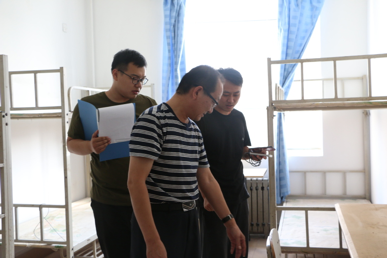 耿书记和王处长深入到各个新生宿舍,详细察看了墙壁粉刷、设备维修、物品设施、宿舍卫生等情况,指出学生公寓应打造卫生、舒适、整洁的住宿环境,本着从自己准备入住的角度,为自己量身打造的出发点,认真清理、打扫,为新生营造高标准的符合自己入住的住宿条件。各系辅导员要及时跟进、重点排查与社区管理中心配合解决相关问题,并给各系辅导员认真详细地讲解了宿舍清理标准,要求各系认真处理好宿舍内部的相关卫生问题。