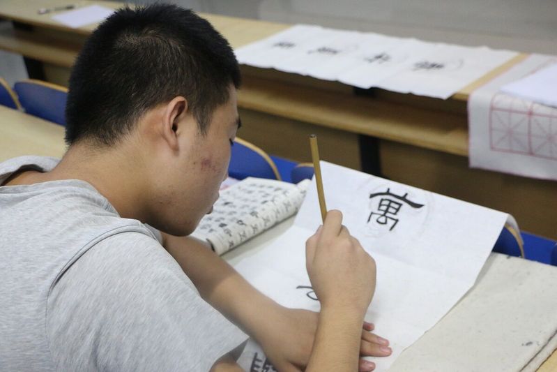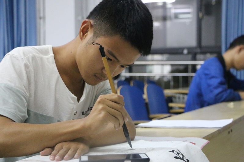 在比赛中大家尽情的挥毫泼墨,选手们都全神贯注于作品的创作中,一丝不苟,点横撇捺,工整美观,尽力表现出自己的最高水平,形成比赛中亮丽的风景线。纸上展现出的不只是一个个工整的字,更展现出的是他们深厚的书写功底。随着时间流逝,参赛选手纷纷完成了自己的创作。他们的作品中有刚正不阿的楷书,有古色古香的隶书,有潇洒飘逸的行书,连空气中都泛着一股淡淡的墨香,让我们深刻感受到中华传统文化的魅力。最后,在书画协会工作人员的组织下,参赛选手有秩序的离开现场。