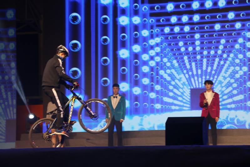 此次晚会共分为三个篇章:致敬青春、放歌朝华、启梦未来。每一个篇章的节目都从不同侧面全方位展示了我校的风采。伴随着LED大屏幕上的倒计时,迎新晚会在开场舞《幸福花开》中拉开帷幕;现代舞《致青春》,动感的音乐和奔放的舞姿展现出了大学生的风采与活力;随后,M·EAST街舞社带来了激光舞《Salute Michael Jackson》,帅气十足的舞姿让晚会气氛更加热烈,更引来了同学们的阵阵掌声和赞叹。微风乍起,些许寒意并没有影响到同学们的热情。歌曲《重返十七岁》走进了在场所有人内心最柔软细腻的一隅,背后的LED视频与前台表演交相呼应,给观众带来了一场视听盛宴;朗诵《大学是什么》由师生同台演出,共同演绎了美好的画卷;小品《你的模样》幽默风趣却又感人至深,深深表达了老师们对学生的爱与奉献。整场晚会精彩不断,高潮迭起,赢得台下阵阵掌声。