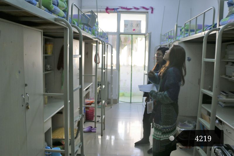 社区管理中心老师和各系辅导员老师们细心检查宿舍,针对日常学生公寓内存在的安全隐患情况,进行了细致的督查和询问,在关心慰问宿舍内学生生活与学习情况的同时,也对学生公寓内仍存在的安全隐患进行了现场督导。窗明几净的宿舍中,整齐的书桌与被褥,陈设的生活用品井然有序的摆放着,一尘不染的地面映射着窗外的树影。宿舍就是同学们的第二个家,宿舍卫生状况的良好与否,直接关系到同学们的身心健康。将“人人讲究卫生、时时牢记文明”变为全体学生的自觉行动。
