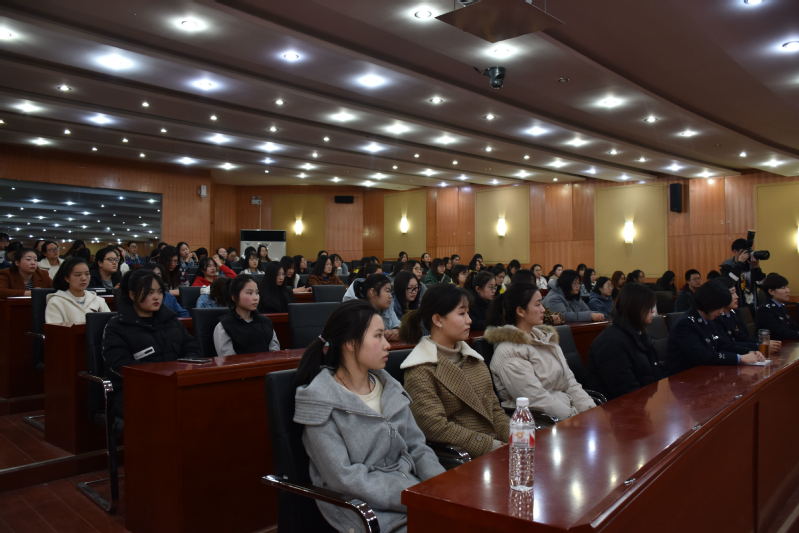(学生通讯员郭雨涵)为进一步推进平安校园建设,不断巩固警校共建安全防范的长效机制,3月6日下午,在三八国际劳动妇女节即将来临之际,学生工作处与泰安市公安局高新区分局共同举办“警花不放假,守护女神梦”——3•8女警进校园活动。