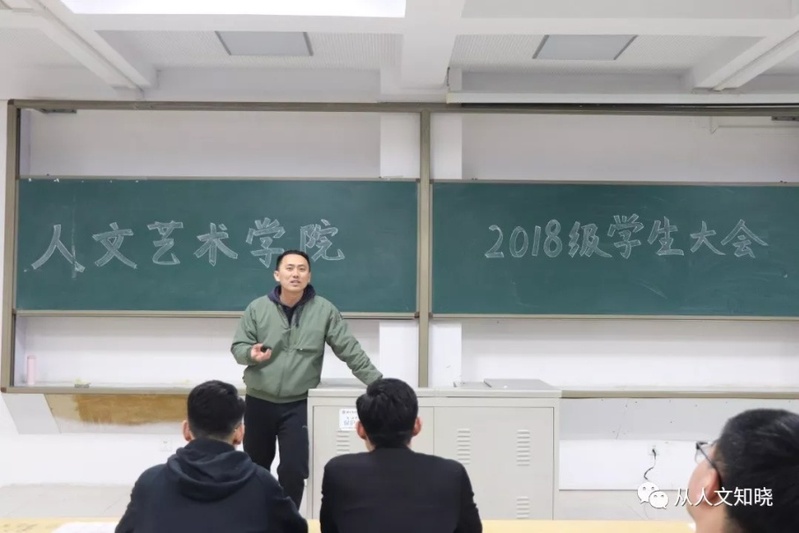 2、3月24日晚,人文艺术学院在唯美楼5405教室召开人文艺术学院18级学生日常管理工作部署会,2018级全体学生参加了本次会议,我院辅导员何堃出席会议并发表讲话。