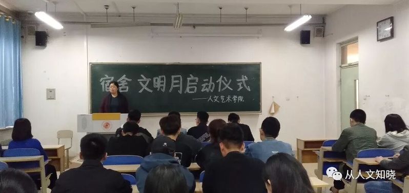 3、为预防春季传染病,使学生养成良好的卫生习惯。人文艺术学院全体师生于3月25日在3103举行“宿舍文明月”活动启动仪式,我院学生会卫生部组织了100余名同学参与了本次启动仪式。仪式由人文艺术学院学生党支部书记高贤敏主持。