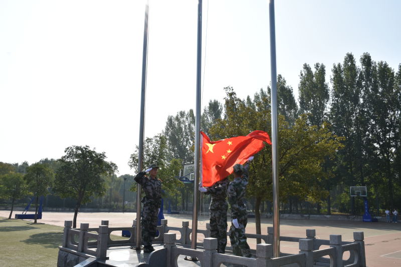 庄严的号角声伴随着雄壮的国歌,五星红旗在全体与会人员的注目礼下缓缓升起,礼炮齐鸣,hjc222黄金城官网2019年度学生军训成果汇报大会拉开序幕!