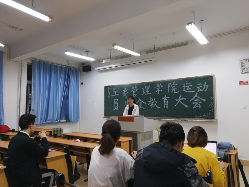 3.运动会召开前夕,为保证参赛运动员的人身安全,预防各类安全事故的发生,工商管理学院于4月24日晚召开运动员安全教育大会。安全无小事,时刻挂心间。工商管理学院体育部部长杨舒婷结合以往经验与实际案例,做出运动员应做好赛前准备、加强自我保护、量力而行、遵循赛场秩序,参加集体项目时加强配合,团结一心,严禁发生陪跑、替跑等现象,体育竞赛中心要积极筹备,做好突发事件应急预案等七点规划与要求。