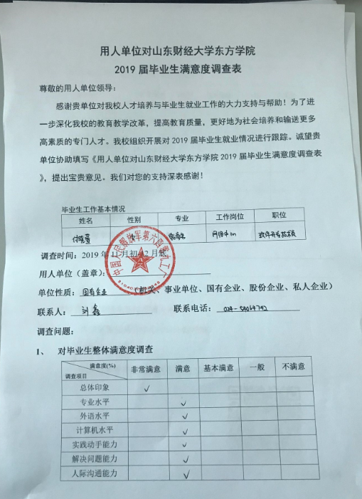 今年《就业跟踪调查问卷》的设置,学生工作处征求和采纳了学校相关职能部门和各二级学院的合理化建议。调研本着科学严谨、实事求是的原则开展。学生工作处在学校网站和毕业班群内下发相关工作通知,宣传做好就业回访工作对国家、学校和毕业生的重要意义,争取毕业生的配合。对开展回访工作的辅导员和学生助理大学生就业指导中心进行了业务培训和指导。各学院进行了精心组织和广泛动员,工作扎实推进,调查采取了电话调查和网上调查两种方式,并根据回访获知的实际情况完成了相关记录和备案。